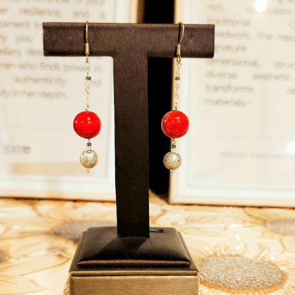 When the passionate red coral fossil meets the elegant silver beads, they just look like the Moon and the Sun.