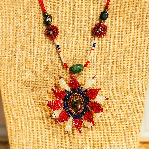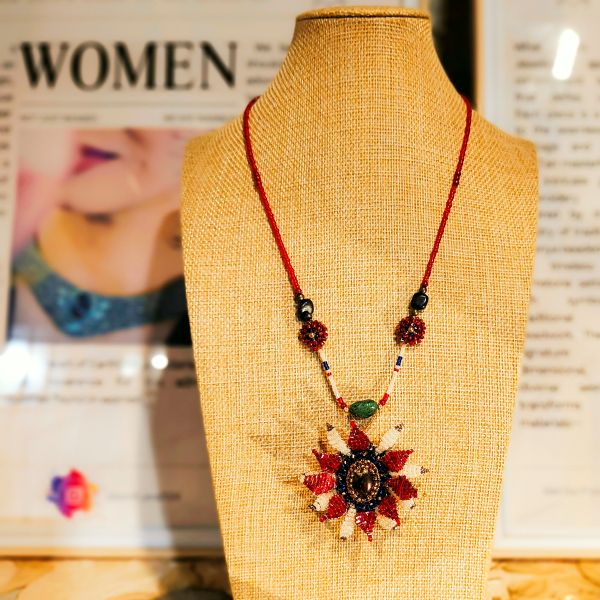 The fiery red of this necklace symbolizes the burning passion of people towards their countries, eagerly wanting their countries to be better.